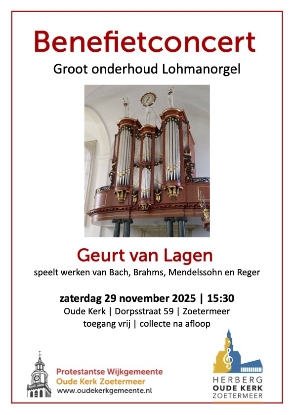 Orgelconcert door Geurt van Lagen, met ingebruikname van het schoongemaakte Lohmanorgel. | ||